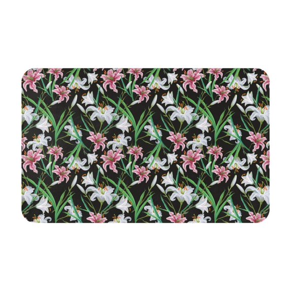 Hero image 0 of Lilies Flowers Black Pink Door Mat for Indoor, Welcome Door Mats Front Entrance Rug, Non-Slip Bathroom kitchen Rugs for Inside Floor, Small Rug Dog Door Mat 20X31.5 Inch, 0 of 5