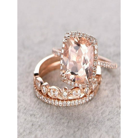 22 optionsAvailable in additional 22 options$99999current price $999.99More options from $719.99Trio Set 2 Carat Cushion Cut Morganite Wedding Set Engagement Ring Bridal Ring Anniversary Ring On 10k Rose Gold Halo Glaring Staggering