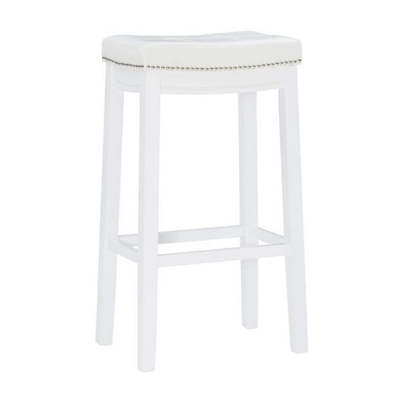 This Best Selling Barstool Helps To Make Any Kitchen Or Parlor Room Welcoming To Guests And Family, No Matter The Occasion. A Comfortable Padded Seat Is Upholstered With Faux Leather And Fastened With Double Needle Stitching For Added Durability. Shiny Silver Nail Head Trim Lines The Cushion, While White Paint Covers The Solid Wood Frame To Provide A Regal Aesthetic. The Seat Height Of 32.25” Is Perfect For Counter Heights Measuring 40”H To 43"H.