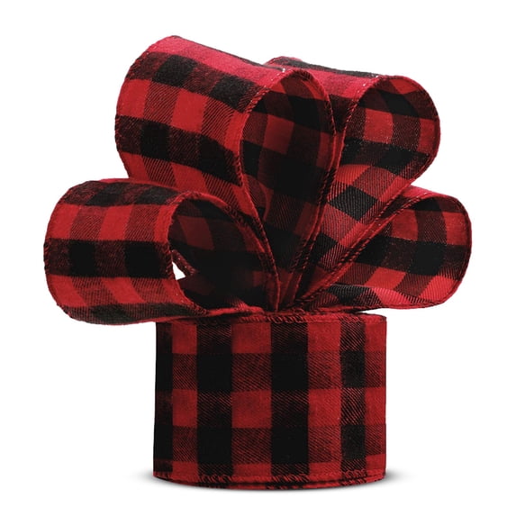 Hero image 0 of Linyer Christmas Linen Wired Ribbon Accessory Plaid Burlap Fabric Xmas Checkered Decoration Holiday Crafts Wrapping Black Red 15m, 0 of 8