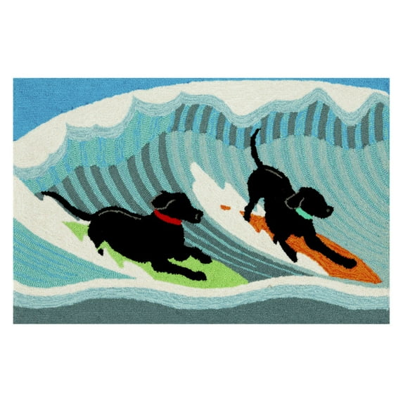 Liora Manne Frontporch Surfing Dogs Indoor Outdoor Area Rug Ocean