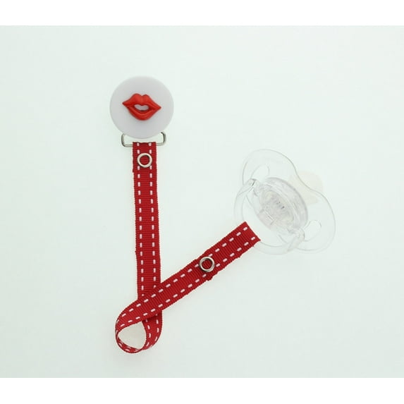 Lips Button Pacifier Clip with Matching Ribbon