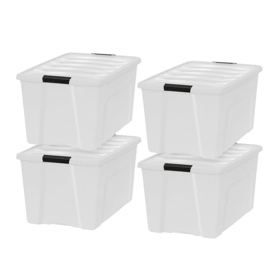 Hero image 0 of IRIS USA 72 Qt Stackable Plastic Storage Bins with Lids, 4 Pack - BPA-Free, Made in USA - Discreet Organizing Solution, Latches, Durable Nestable Containers, Secure Pull Handle - Pearl, 0 of 10