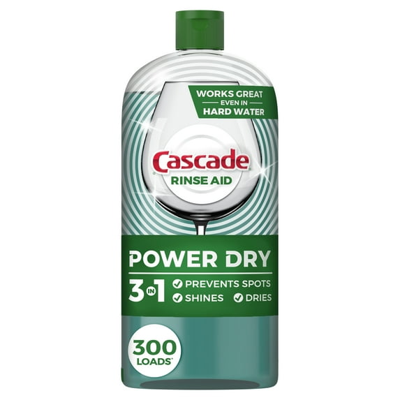 Cascade Power Dry Rinse Aid has three benefits in one product to Prevent Spots, Dry, & Shine your dishes. Cascade Power Dry Rinse Aid delivers an Unbeatable Dry* because its sheeting action helps prevent dish water from clinging to your dishes during your machine's rinse cycle so your dishes rinse cleaner, dry faster, and come out dry & shining with virtually no water spots or streaks *vs detergent alone. Plus, Cascade Power Dry Rinse Aid works great even in hard water. Cascade Power Dry Rinse Aid features an easy to pour cap to prevent spills and is easy to use. For best results, refill your dishwash with Cascade Power Dry Rinse Aid monthly. Cascade Power Dry Rinse Aid is recommended by Cascade Detergent. Cascade is the #1 Recommended Brand in North America** **More dishwasher brands in North America recommend Cascade vs. any other automatic dishwashing detergent brand, recommendations as part of co-marketing agreements