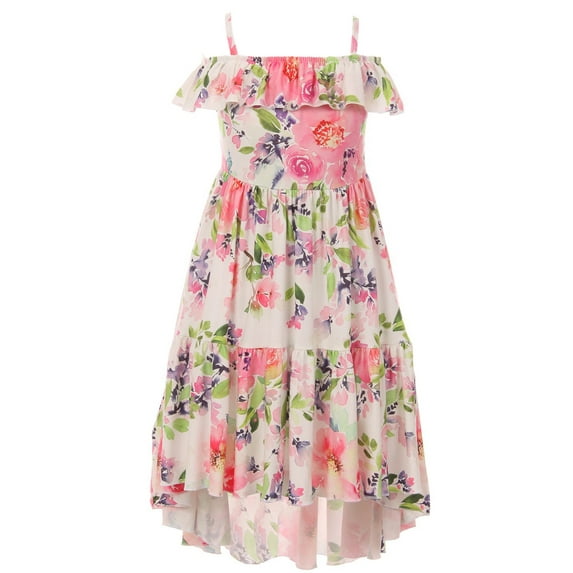 Little Girls' Lovely Off Shoulder Hi Lo Floral Birthday Party Flower Girl Dress Coral 5 L (P201531P)Little Girls Lovely Off Shoulder Hi Lo Floral Birthday Party Flower Girl Dress Coral 5 L P201531P