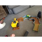 This track and truck are lots of fun. My 2 year old and 4 year old likes the play set a lot. My 10 year old also had fun with it for a few minutes. When you line up the track and push the button on the top of the truck it goes around the track and makes the stack of tires fall over. The digger that come switch the set of connected to the track and cannot be removed. If it also was a stand alone toy that would make it easier for the kids to play together with the track. [This review was collected as part of a promotion.]