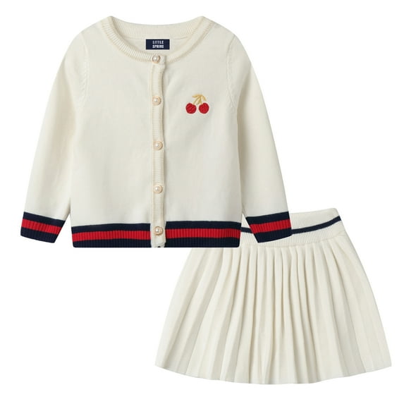 LittleSpring Little Girls Sweater Sets Knit Cardigans and Pleated Skirts Outfits for Kids Cherry White 5TLittleSpring Cute Girls Ribbed Knit Cardigan Skirt Set School Style Fall Clothes for Kids White 5TLittleSpring Cute Girls Ribbed Knit Cardigan Skirt Set School Style Fall Clothes for Kids White Size 6LittleSpring Knit Sweater Outfits for Girls Fall Skirt with Cute Cherry Embroidery Kids Knit 2 Piece Set Pink 12 18 Months