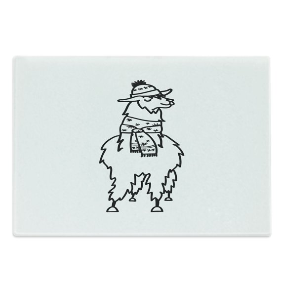 Llama Cutting Board, South American Domestic Alpaca Animal with Winter Attire Monochrome Illustration, Decorative Tempered Glass Cutting and Serving Board, Large Size, Black White, by AmbesonneLlama Cutting Board South American Domestic Alpaca Animal Winter Attire Monochrome Illustration Decorative Tempered Glass Serving Large Size Black WhLlama Cutting Board South American Domestic Alpaca Animal Winter Attire Monochrome Illustration Decorative Tempered Glass Serving Small Size Black WhLlama Cutting Board South American Domestic Alpaca Animal Winter Attire Monochrome Illustration Tempered Glass Serving Wine Bottle Shape Black White