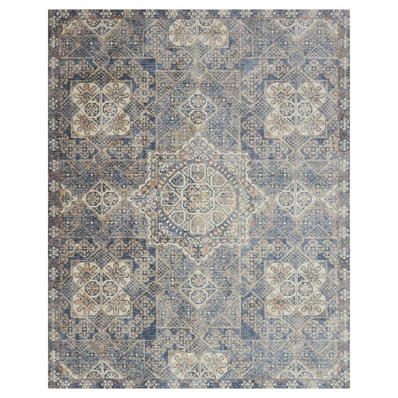 The Loloi Rugs Porcia PB-02 Indoor Area Rug is casual-chic with an overdyed medallion motif in soft blue and sandy beige hues. This indoor rug is power-loomed with a cross-weave for added strength and durability, making it ideal for a high-traffic area in your home. Crafted from soft polyester, this rug has a luxurious sheen and ultra-soft feel underfoot.