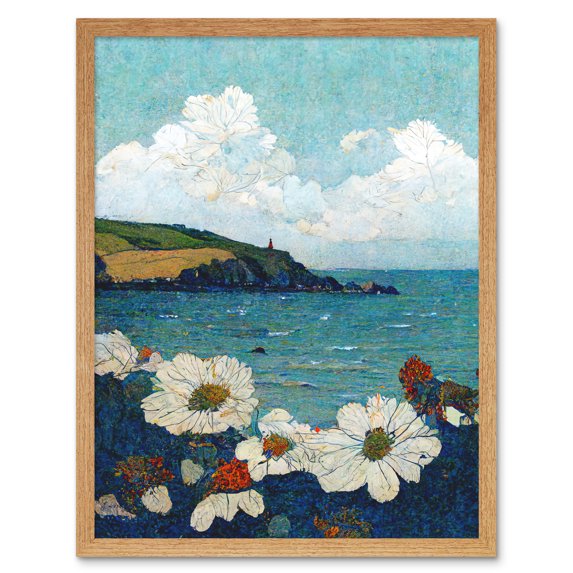 Hero image 0 of Looking Out To Sea Flower Clouds Coastal Ocean Seascape Art Print Framed Poster Wall Decor 12x16 inch, 0 of 5