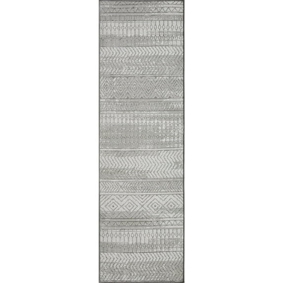 Hero image 0 of Loomaknoti Breyleigh Canderz 2' x 7' Cream/Gray Tribal Indoor/Outdoor Runner Rug, 0 of 7