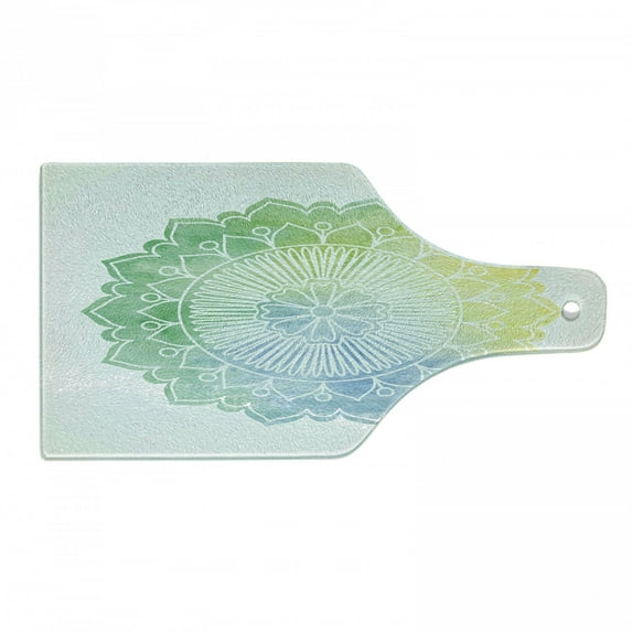 Hero image 0 of Lotus Cutting Board, Boho Mandala in Soft Tones Watercolor Traditional Art, Decorative Tempered Glass Cutting and Serving Board, Wine Bottle Shape, Jade Green Pale Blue, by Ambesonne, 0 of 1
