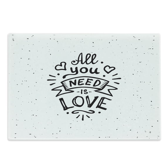 Hero image 0 of Love Cutting Board, Vintage Style All You Need is Love Inscription Retro Hippie Phrase with Grunge Look, Decorative Tempered Glass Cutting and Serving Board, Large Size, Black White, by Ambesonne, 0 of 1