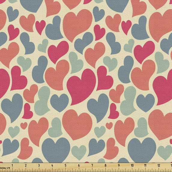 Hero image 0 of Love Fabric by the Yard, Rhythmic Colorful Abstract Hearts Pattern on Muted Tones Backdrop, Decorative Upholstery Fabric for Sofas and Home Accents, Champagne Coral by Ambesonne, 0 of 5