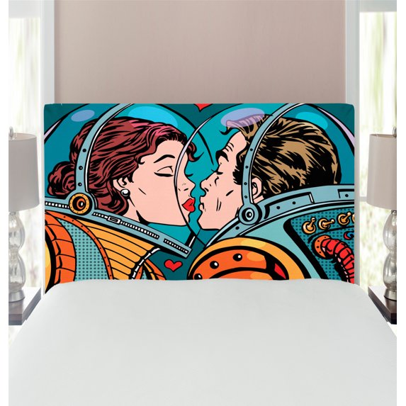 Love Headboard, Space Man and Woman Astronauts Kissing Science Cosmos Couple Pop Art Design Print, Upholstered Decorative Metal Bed Headboard with Memory Foam, Twin Size, Multicolor, by AmbesonneLove Headboard Space Man Woman Astronauts Kissing Science Cosmos Couple Pop Art Design Print Upholstered Decorative Metal Bed Headboard Memory Foam T
