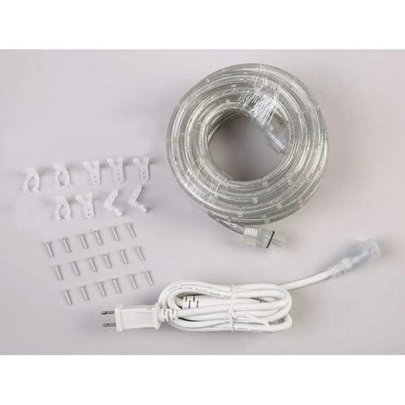 Formerly LumaPro.LED Rope Light, Casing Color Clear, Light Color Warm White, Overall Length 18 ft, Overall Height 1/2 in, Wattage 13 W, Voltage 120 V AC, Rated Life 30,000 hr, Dimmable No, Includes (18) Screws, (9) Mounting Clips, Power Cord, Spare Fuse, Bulb Spacing 1 in, Casing Material PVC, Chasing No, Color Rendering Index 70, Color Temperature 3000K, Connection Type Plug-In, Environmental Rating Wet Location Rated, Light Output Not Applicable, Manufacturer Warranty Length 1 yr WARNING: Cancer and Reproductive Harm - www.P65Warnings.ca.gov -
