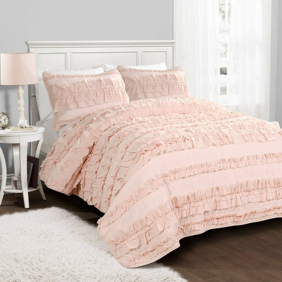 Lush Decor Belle Textured Cotton-Polyester Ruffle Quilt, Twin, Pink Blush, 2-Pc Set