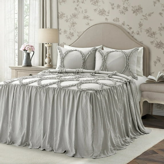 Lush Decor Riviera Ruffle Detail, Bedspread, King, Light Gray, 3-Pc Set