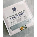 The Rowley Birds Cotton Duvet Cover 3 Piece Set includes a soft cotton duvet cover and two matching pillow shams to complete the look. It is available in Full/Queen and King sizes.