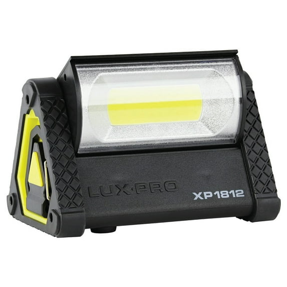 This pro series directional pivoting battery-powered LED work light is ultra-bright with an incredible 1050 lumens in high mode. It has 2 modes: high and low for customizable lighting and is capable of running for an astounding 7 hours on high and 35 hours on low. This triangle work light features three powerful magnets at its base and the corners are protected with gripping rubber for secure placement. It also has a hook for convenient hanging and an ergonomic handle provides a comfortable grip. The XP1812 area light is designed with a 225° pivoting broad beam light that automatically turns off when it's closed for both ease of use and extended battery life. It utilizes 4 C cell batteries. (not included) You'll be blown away when you light up the entirety of work or campsite with just one light. It has an incredible runtime and is ultra-bright, making it perfect for lighting up fields, garages, worksites, campsites, and outdoor sporting events.