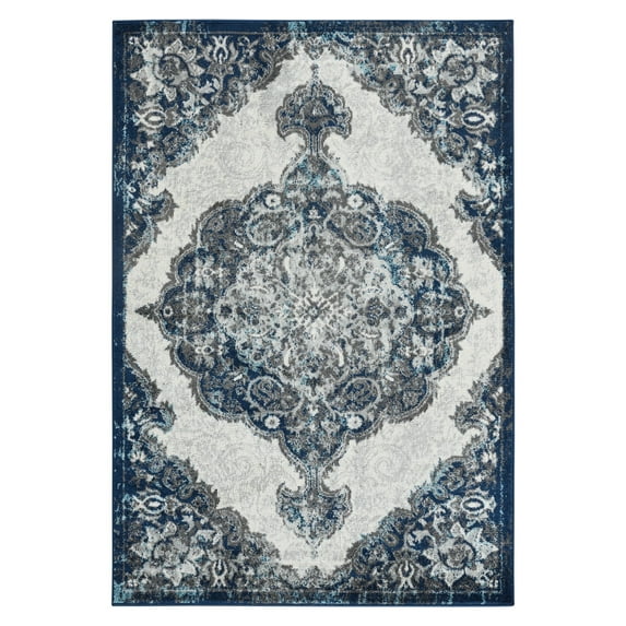 Hero image 0 of Luxee Designs Alexandria Collection 4x6 Area Rug, Medallion Rugs for Living Room, Bedroom, Kitchen, Office, Pet Friendly, Low Pile, High Traffic Area, Stain Resistance - Ivory/Navy, 0 of 5