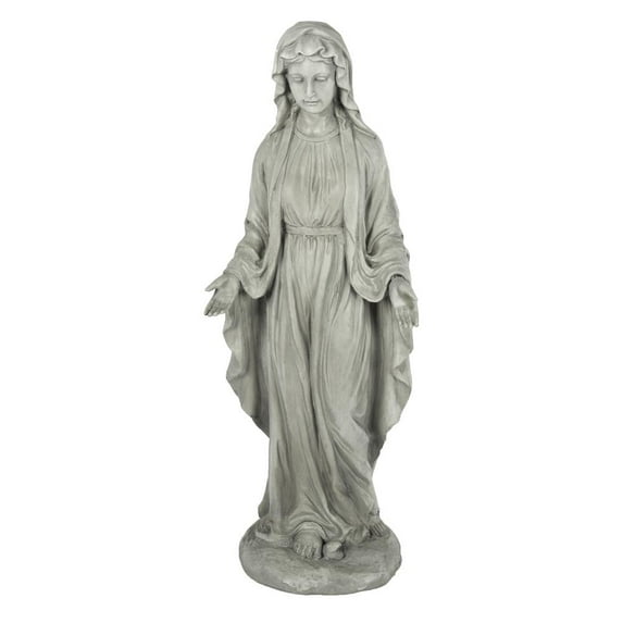 Bless your home with this Mary statue. The Mary statue warmly invites prayers and peace into your home. The Mary statue creates a wonderful conversational piece and focal point while adding beauty to your home. This statue is made of durable magnesium oxide material that is UV and weather resistant. In a traditional gray stone-like finish, Mary will be a wonderful addition to your patio, porch, deck, entryway, sun room, and so much more. The Mary statue is also a great gift item for your family and friends!
