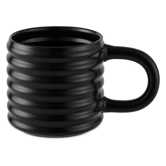 Kickstart your day with the refreshing Mainstays 17oz Ribbed Matte Finish Coffee Mug in Black. The ribbed design and matte finish give it a sleek, modern look, while the bold black color adds a touch of sophistication to your kitchen. With a generous 17oz capacity, it’s perfect for enjoying your favorite coffee, tea, or hot chocolate. Made from durable ceramic, this mug is built to last, and the comfortable handle makes it easy to hold. Whether you're powering through the morning or winding down after a long day, the Mainstays Black Ribbed Coffee Mug makes every sip special.