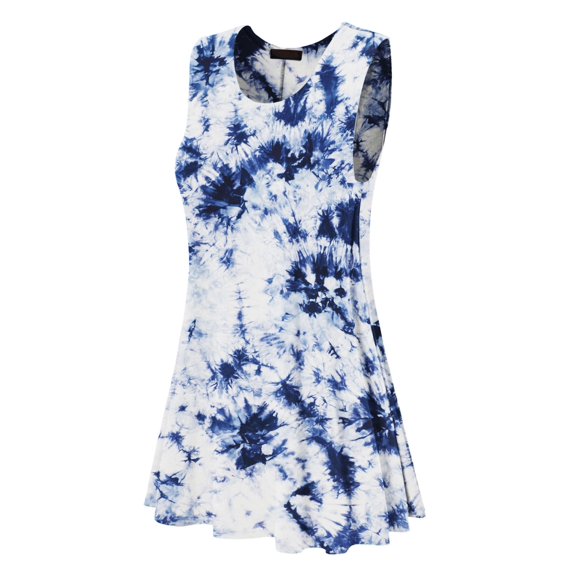 Hero image 0 of MBJ WDR1077 Womens Tie Dye Round Neck Sleeveless Trapeze Dress Tunic Top L WHITE_NAVY, 0 of 4