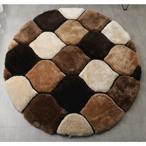 MDA Rug Imports Mateos Shag Collection Area Rug Brown 7' Round Trellis, Geometric 6' Round Ivory, Beige Round