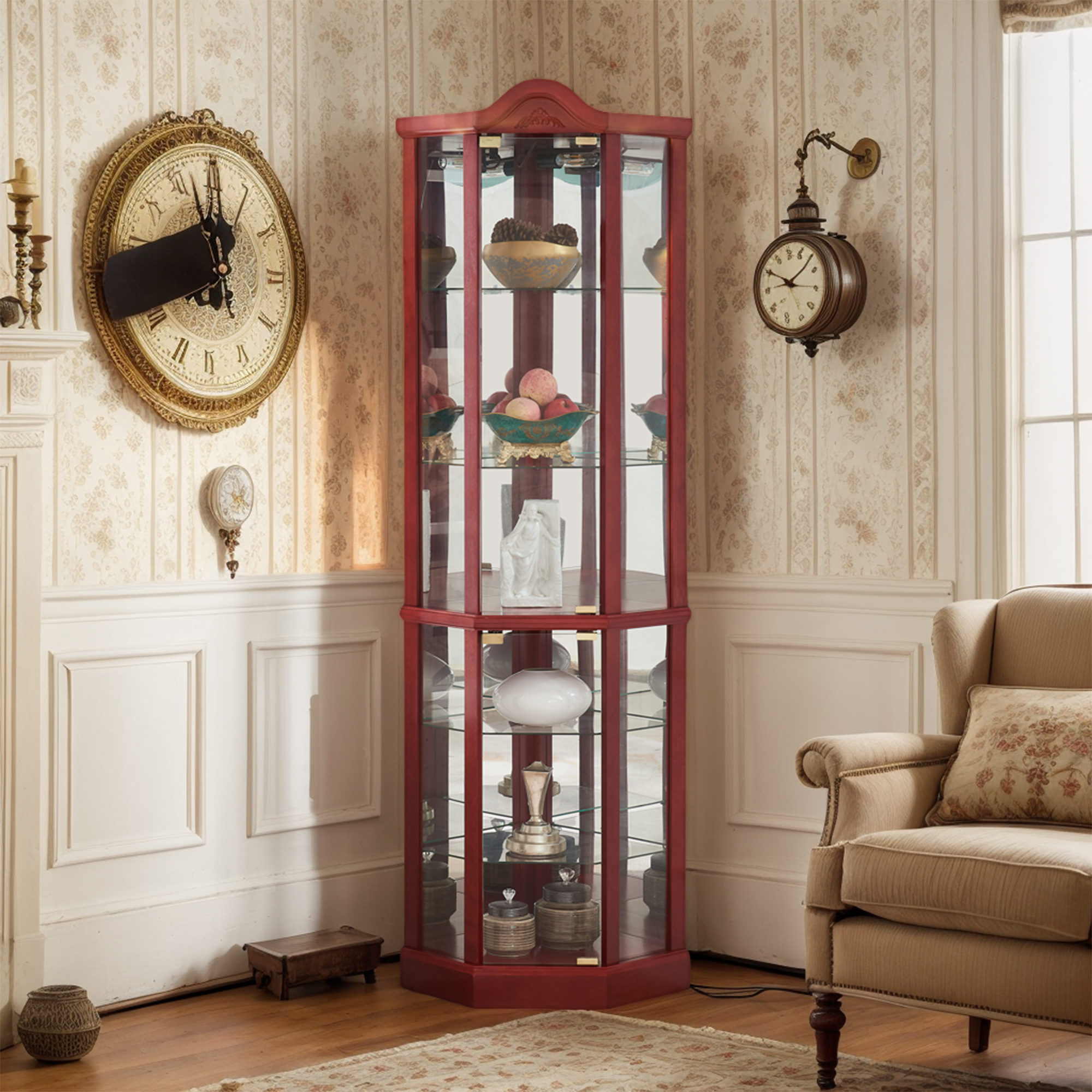 11 out of 5 Stars. 1 reviewsShipping, arrives in 3+ days[Luckynote]Corner Glass Cabinet Lighted Curio Cabinet Corner Display Case for Living Room, Curio Cabinet, Antique collection, Wine,Bar Glass Storage Light Included,Dark Cherry $189.99