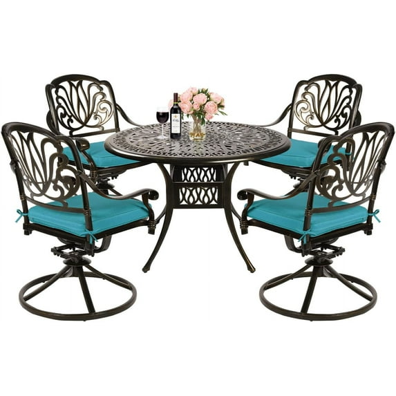 MEETWARM 5-Piece Outdoor Patio Dining Set, All-Weather Cast Aluminum Patio Conversation Set for Backyard Garden Deck with 4 Cushions Swivel Rocker Chairs and 35.4" Round Table, Ocean BlueMEETWARM 5 Piece Outdoor Patio Dining Set All Weather Cast Aluminum Patio Conversation Set Backyard Garden Deck 4 Cushions Swivel Rocker Chairs 35 4MEETWARM 5 Piece Outdoor Patio Dining Set All Weather Cast Aluminum Patio Conversation Set Backyard Garden Deck 4 Cushions Swivel Rocker Chairs 35 4MEETWARM 5 Piece Outdoor Patio Dining Set All Weather Cast Aluminum Patio Conversation Set Backyard Garden Deck 4 Cushions Swivel Rocker Chairs 35 4
