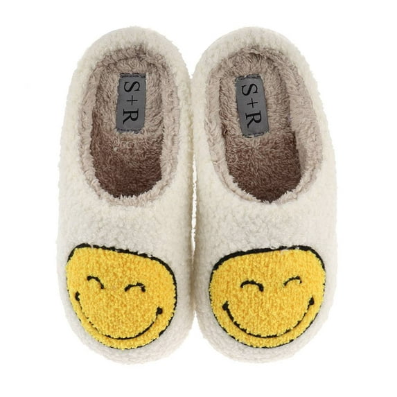 S+R Women's Smiley Graphic Cozy Slide Slipper