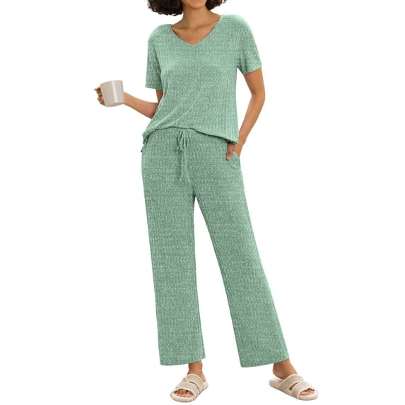 Hero image 0 of MINTREUS Women's Ribbed Knit Pajama Set Soft Lounge Set Lightweight Sleepwear Two Piece Matching Outfits Set, 0 of 7