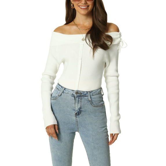 - MODA NOVA Juniors Off Shoulder Ribbed Knit Casual Long Sleeve Solid Sweater Pullover Top White XL