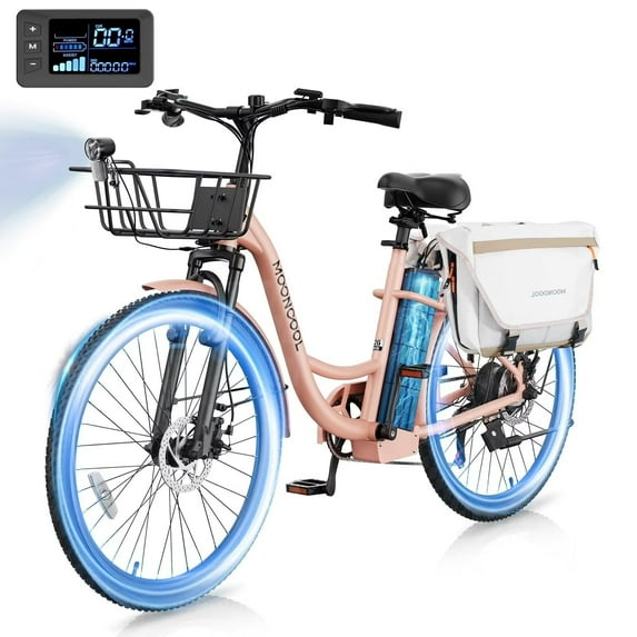 $55900current price $559.00More options from $529.99MOONCOOL Electric Bicycle for Adults 350W , 7-Speed Ebike with 36V 10.4Ah Removable Battery, 40 Miles Range , 20 mph Electric Commuter Bike for Women Men, Certified to UL 2849 by SGS