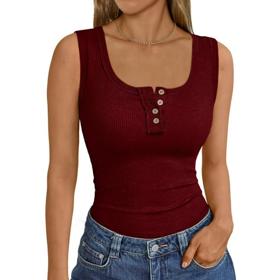 Hero image 0 of MOSHU Henley Women Tank Tops Ribbed Summer Tops Button Down Sleeveless Shirts, 0 of 6