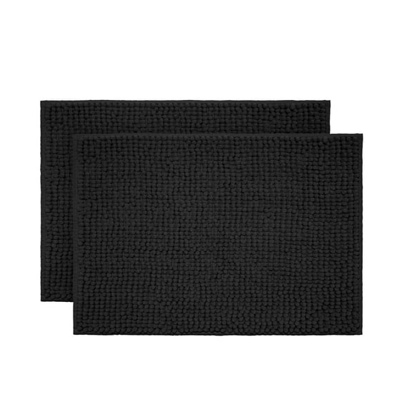 Mainstays Basic Polyester Chenille Noodle Bath Rug, Rich Black, 17"x24", 2-Piece Set