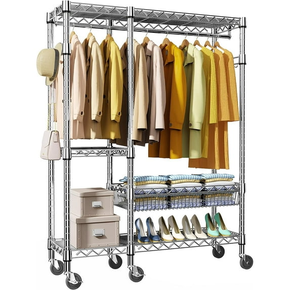 174.5 out of 5 Stars. 17 reviewsShipping, arrives in 3+ daysBaokaler 500 lbs Clothing Rack Heavy Duty Hanging Rack with Shelves Collapsible Clothes Racks on Wheels Rolling Garment Rack for Hanging Clothes Portable Adjustable, Chrome Finish $69.99