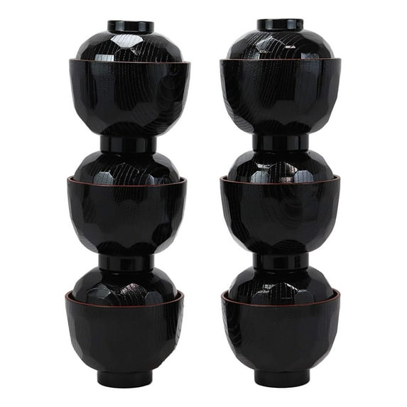 Hero image 0 of Made In Japan Honeycomb Ridged Black Red Lacquer Plastic Bowl With Lid Set of 6, 0 of 9