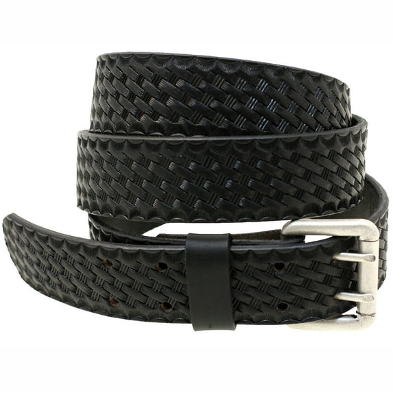 Hero image 0 of Made In USA 1 1/2 Black Leather Belt Double Holes Basket Weave Embossing, 0 of 4