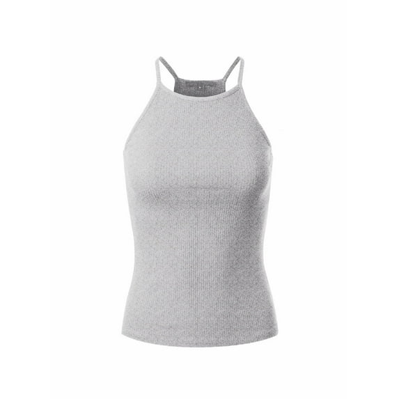 Made by Olivia Women's Basic High Halter Neck Sleeveless Ribbed Racerback Tank Top