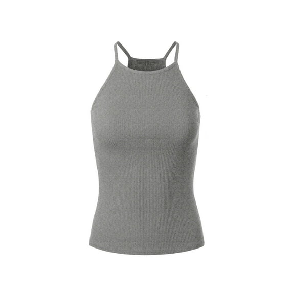 Made by Olivia Women's Basic High Halter Neck Sleeveless Ribbed Racerback Tank Top