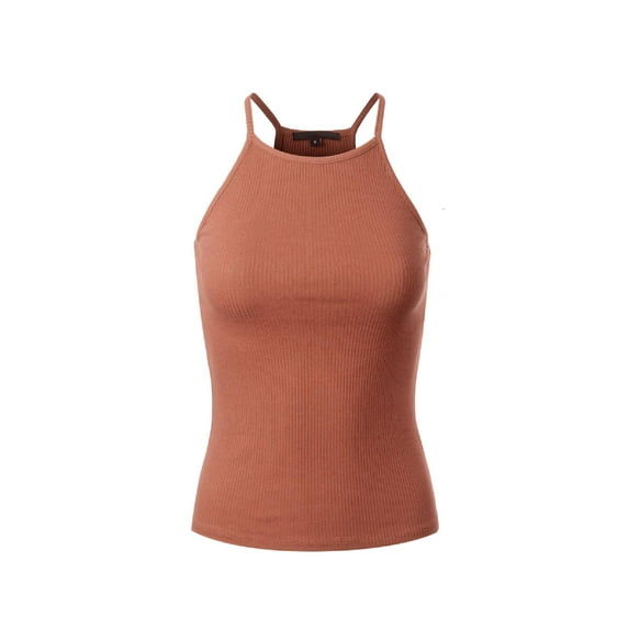 Made by Olivia Women's Basic High Halter Neck Sleeveless Ribbed Racerback Tank Top