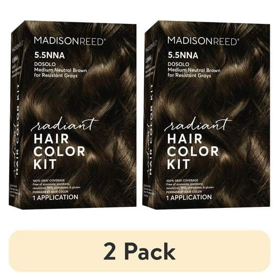 - 2-pack of Madison Reed Radiant Permanent Hair Color Kit, Dosolo, (5.5NNA), Medium Neutral Brown, 8-Piece Kit