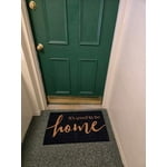 This is a really nice outdoor doormat. The coir material is thick and sturdy, and it does a great job trapping dirt before it gets inside. The navy color looks great at the front door and hasn't faded, and the “Good to Be Home” message is welcoming without being over the top. It's the perfect size, lays flat, and doesn't slide around. After rain and regular foot traffic, it's held up well and still looks good. For the price, this is a great quality mat and a simple way to make the entryway look more put together. Highly recommend.