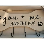 - PET WALL PLAQUE WITH HOOKS - This wood and metal pet wall plaque is a perfect addition to any pet lover's home. In the shape of a bone, with paw prints and the phrase you + me and the dog, it features four hooks for hanging leashes, collars, or other pet accessories.