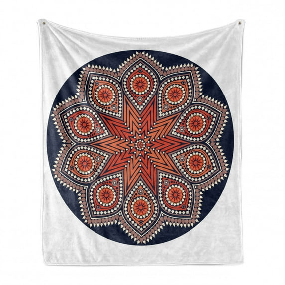Hero image 0 of Mandala Soft Flannel Fleece Throw Blanket, Ornamental Eastern Round Lace Motif Boho Mosaic, Cozy Plush for Indoor and Outdoor Use, 60" x 80", Dark Night Blue Rust, by Ambesonne, 0 of 5