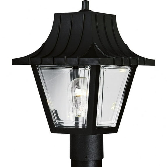 Product DescriptionPost lantern with ribbed mansard roof. Beveled clear acrylic panels.From the ManufacturerWeather and corrosion-resistant non-metallic mansard-style fixture with clear acrylic windows. Post lantern with ribbed mansard roof. Beveled clear acrylic panels. Uses (1) 60-Watt medium base bulb 8-Inch Diameter by 12-Inch Height Fits 3-Inch post (sold separately)