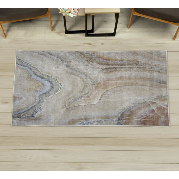 Hero image 0 of Marble Print Decorative Rug, Surreal Onyx Stone Surface Pattern Pale Blue Details Picturesque Art, Quality Carpet for Bedroom Dorm and Living Room, 6 Sizes, Cinnamon Beige Tan, by Ambesonne, 0 of 1