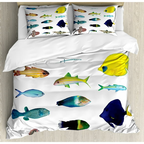 Fish Duvet Cover Set Queen Size, Vivid Underwater Wild Life with Freshwater Tropical Fish Creatures Sea Theme Artwork, Decorative 3 Piece Bedding Set with 2 Pillow Shams, Multicolor, by Ambesonne $49.99